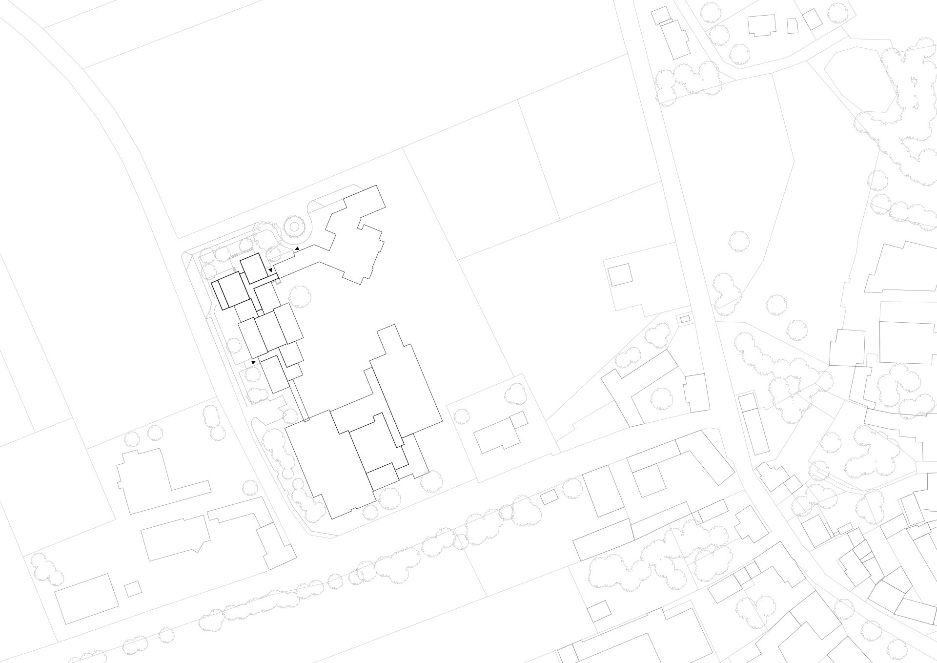 Der Entwurf des Neubaus ist das Ergebnis eines 2021 abgehaltenen geladenen einstufigen Realisierungswettbewerbs. Der eingeschoßige Neubau gliedert sich zwanglos in das Ensemble der Bestandsbauten ein und setzt dessen volumetrisches Spiel durch Übernahme der für den Bestand charakteristischen Dachschrägen fort. Im Inneren bleiben die Dachschrägen sichtbar, was ein großzügiges Raumerlebnis erzeugt. Der Zubau bindet barrierefrei an die Bestandgebäude der Volksschule und des Kindergartens an und enthält auf einer Netto-Raumfläche von insgesamt 270m² einen GTS-Raum, einen Werkraum, ein barrierefreies WC und einen Technikraum.