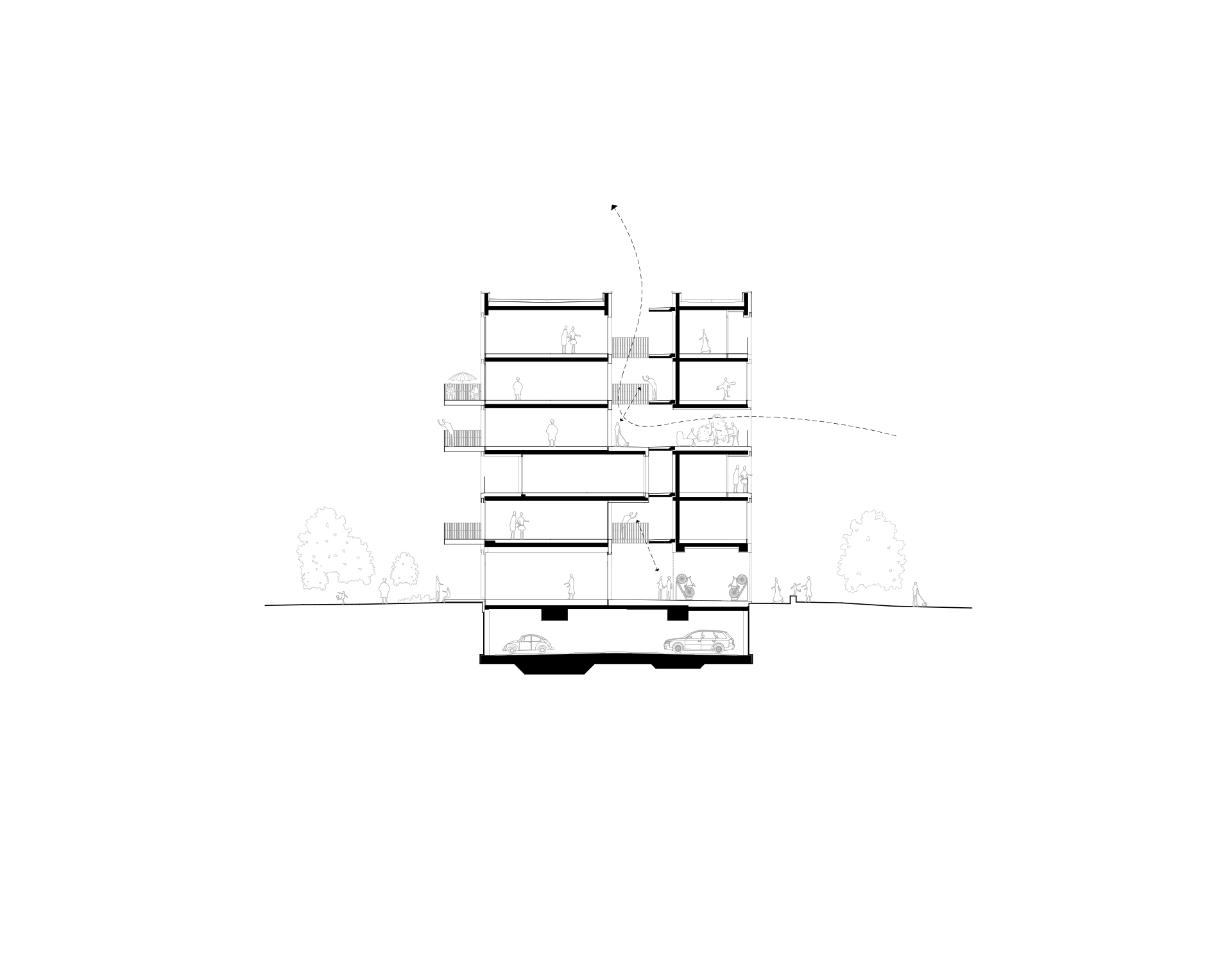 Der Wohn- und Gewerbebau Big is beautiful in Graz ist ein Bekenntnis zur qualitätsvoll verdichteten Stadt. Der bestehende, heterogene Stadtraum wird räumlich neu geordnet, erhält platzartige Erweiterungen und einen großzügigen, öffentlich zugänglichen Quartierspark. Im Gebäude selbst können ein Dutzend Wohnterrassen von allen Bewohner*innen des Hauses gemeinschaftlich genutzt werden. Dies stärkt nachbarschaftliche Kommunikation und soziales Miteinander