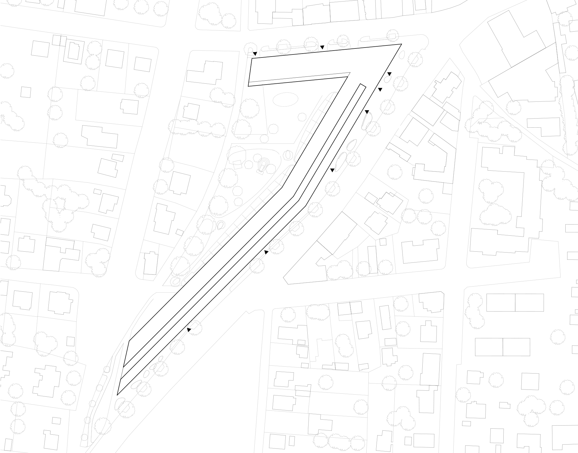 Entlang der Nordseite wird Bezug zu den Fragmenten der gründerzeitlichen Stadt genommen.