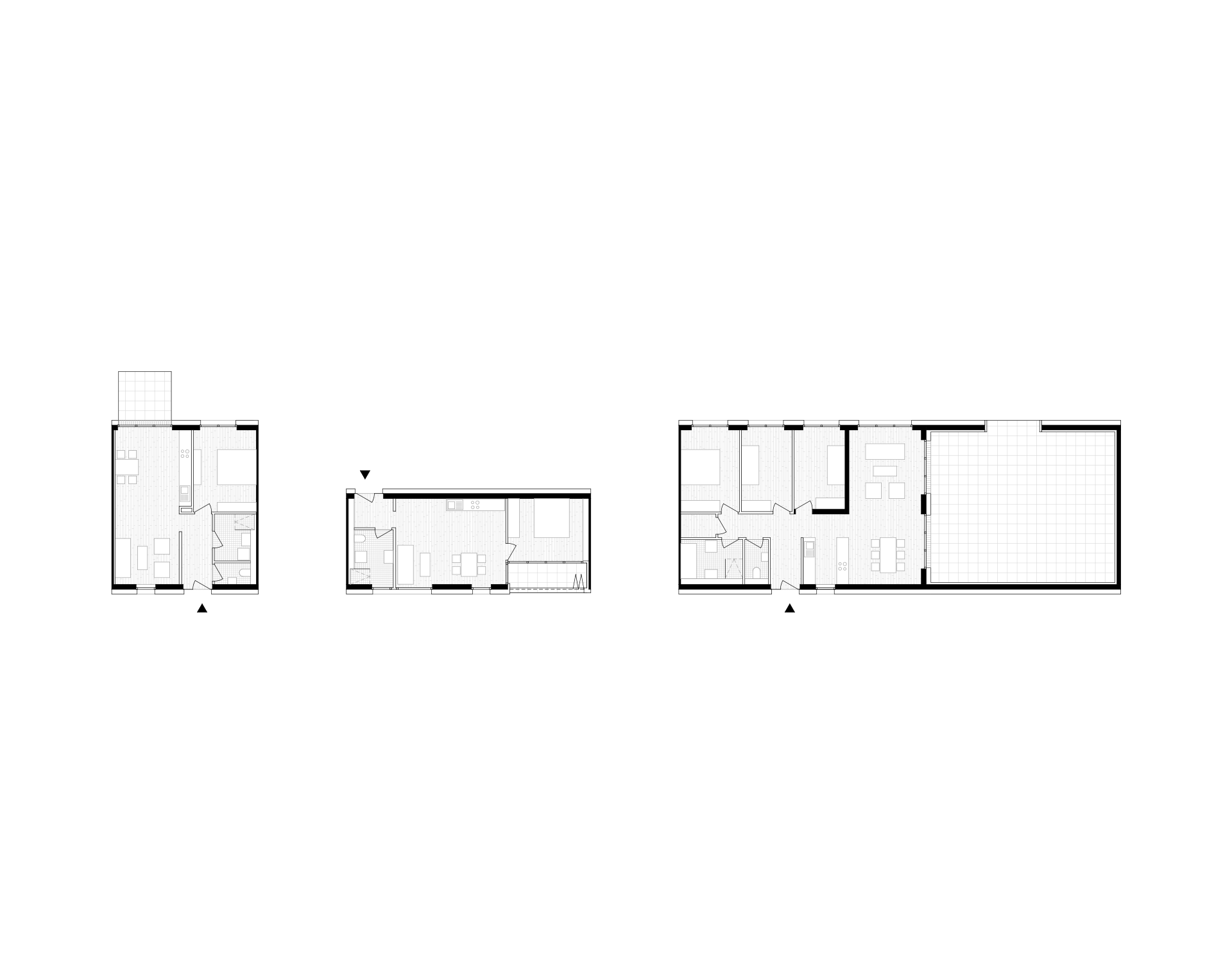 Die – zum Teil geförderten – Mietwohnungen im Bauteil Mitte und Süd werden über eine zentrale Laubengangzone erschlossen, die durch zwölf offene Gemeinschaftsterrassen Richtung Reininghausstraße räumlich erweitert wird. Zusätzlich werden Richtung Quartierspark orientierte Wohnungen in die Laubengangzone eingeschoben, wodurch sich in der Laubengangzone auf den Dächern dieser Wohnungen kleine Plätzchen bzw. Richtung Quartierspark privat nutzbare Loggien bilden. Auf Seite des Quartiersparks erweitern zusätzlich Eigengärten im Erdgeschoß und Balkone in den Obergeschoßen das private Freiraumangebot. Die straßenseitigen Wohnungen besitzen private Schallschutzloggien, an die jeweils der Wohnraum und das Schlafzimmer angebunden sind.